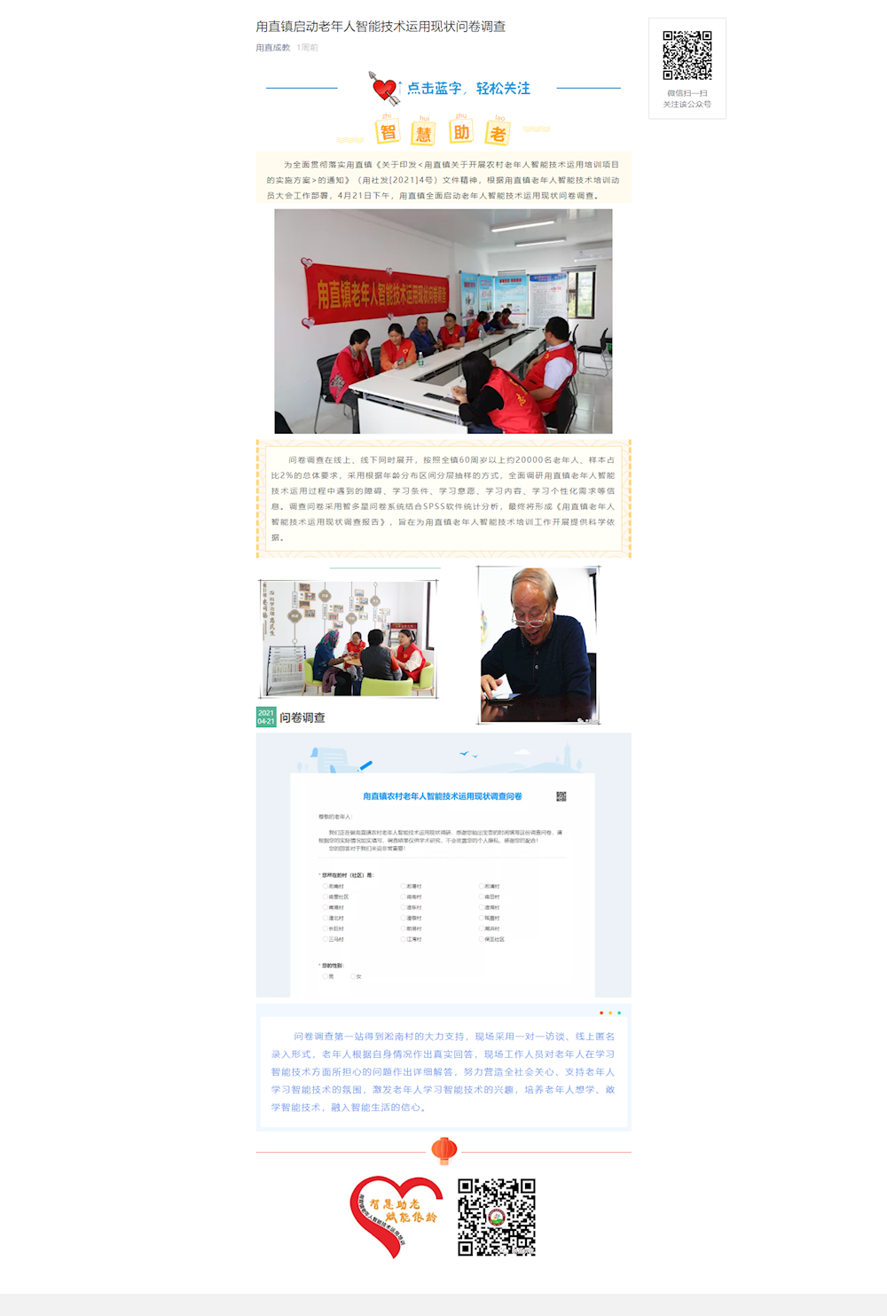 甪直镇启动老年人智能技术运用现状问卷调查