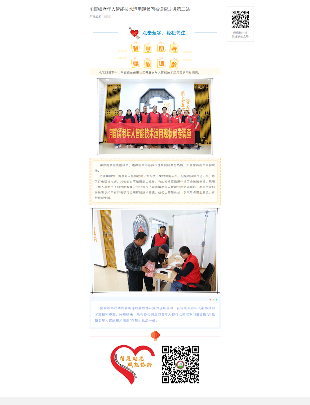 甪直镇老年人智能技术运用现状问卷调查走进第二站