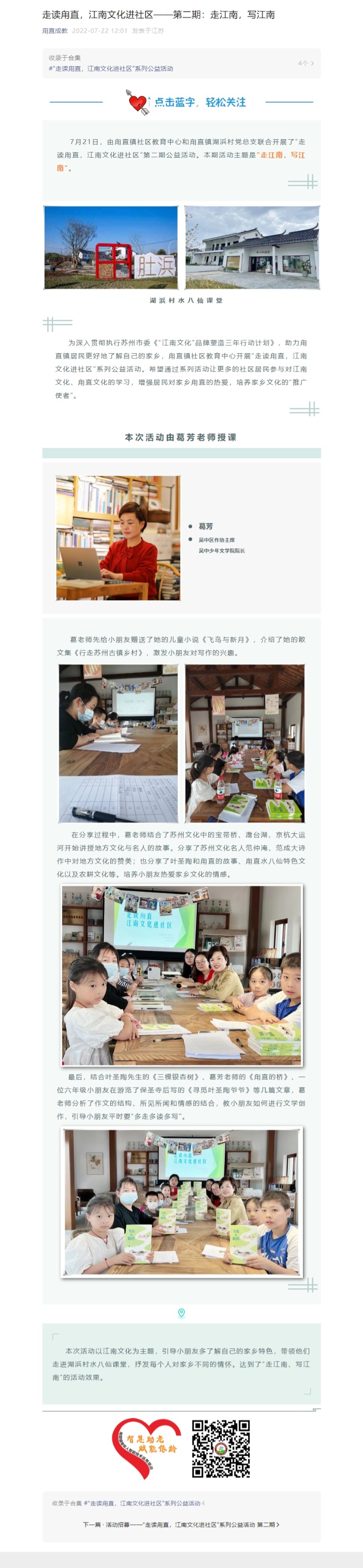 走读甪直,江南文化进社区——第二期:走江南,写江南