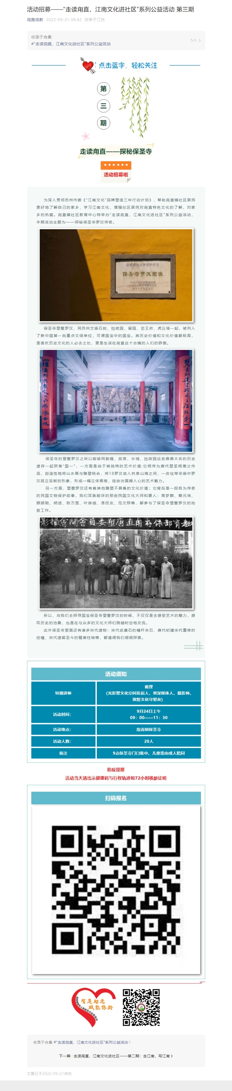 活动招募——“走读甪直,江南文化进社区”系列公益活动 第三期